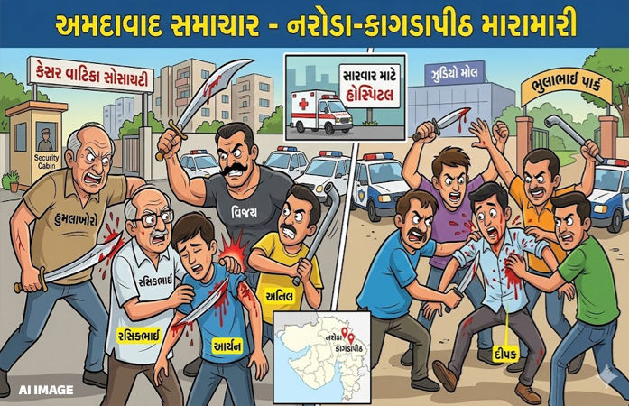 નરોડામાં પિતા- પુત્ર સહિત ત્રણ લોકો અને કાગડાપીઠમાં ચાર લોકોને તલવાર અને પાઇપ વડે મારામારી કરી, સારવાર માટે ખસેડવા પડ્યા