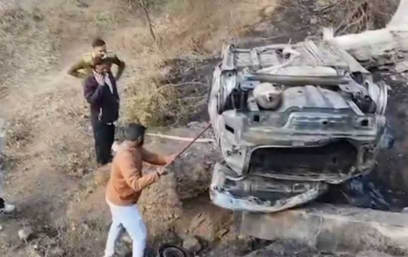 Accident in Rajkot: રાજકોટના ગોંડલ-આટકોટ હાઈવે પર શુક્રવારે (30મી જાન્યુઆરી) વહેલી સવારે એક કાળજું ધ્રુજાવી દે તેવી દુર્ઘટના સર્જાઈ છે. મોટા માંડવા અને મોટા દડવા ગામ વચ્ચે એક પૂરઝડપે જતી કાર અનિયંત્રિત થઈને પુલ નીચે ખાબકી હતી. કાર ઊંધી પડતાની સાથે જ તેમાં ભીષણ આગ ફાટી નીકળી હતી, જેમાં સવાર બે લોકોના મોત નિપજ્યા હતા.