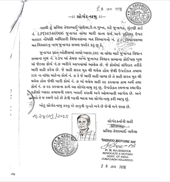 Shocking revelation regarding the functioning of SIR in Junagadh, why did Corporator Pravin Vaghela, who raised objections by filling out Form 7A, file an affidavit?